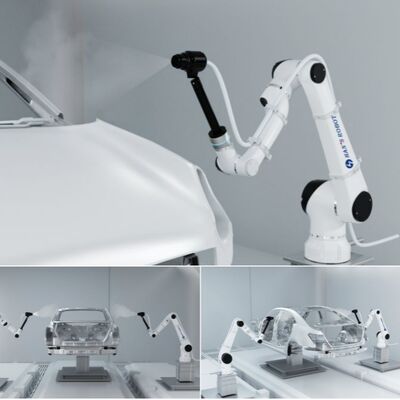 Rispetto ai tradizionali robot industriali di spruzzatura, l'HANS Elfin cobot offre una programmazione più semplice, costi di installazione inferiori e un funzionamento più sicuro senza protezioni di sicurezza. È ampiamente utilizzato nella produzione automobilistica, nella produzione di veicoli elettrici e nelle officine di finitura di componenti auto.